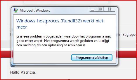 Hai Mako, Helaas heeft dit niet gewerkt... ik ben vanavond druk geweest met mijn pc opschonen, is er iets wat ik dan nogmaals moet doen? moet ik iets anders proberen? Wat doet het dll bestandje eigenlijk? Als het iets is wat nergens invloed op heeft, dan kan ik het ook gewoon zo laten toch? groetjes Patricia Ps Complimenten voor alle hulp! echt supertof!