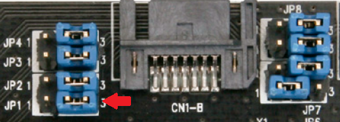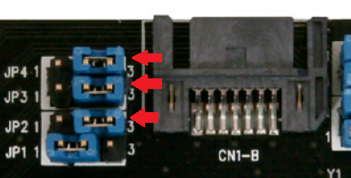 Die jumpers dienen om de SATA poorten te activeren, dus als je hier nog niets aan gewijzigd hebt zullen je SATA apparaten die je aansluit niet werken. Om de SATA poorten te activeren doe je het volgende. De bovenste drie jumpers plaats je naar rechts om de SATA poort ernaast te activeren. Dit kun je herhalen om de andere SATA poort te activeren. Nu dien je nog een apparaat als first device in te stellen. Nu dien je naar keuze één jumper naar rechts te plaatsen om één van de poorten in te stellen als first device. Let op dit mag je maar uitvoeren bij één poort!!!