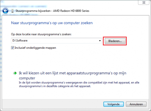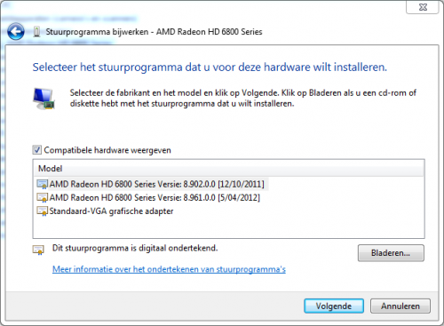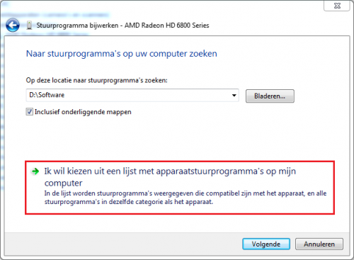 Dat zou moeten volstaan als er een geschikte driver in deze map zit om te laten installeren Als je klikt op Ik wil kiezen uit een lijst met stuurprogramma's op mijn computer worden er dan aanwezige drivers weergegeven?