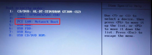 In je eerste afb is te zien dat het booten via het netwerk geactiveerd is. Het booten vanuit het netwerk staat als vierde optie, dus als er geen opstartbaar medium in je cd-dvd drive zit zou deze horen te starten van je harde schijf die als tweede staat > IDE1: ST9500325AS-(S4) Het lijkt erop dat er wat mis kan zijn met je harde schijf. Om je harddisk op fouten te controleren kun je het volgende uitvoeren. Je dient wel een andere werkende pc/laptop ter beschikking te hebben. Download Seatools for DOS ISO image op een andere pc. Brand de ISO als image op een lege cd. Stel in je BIOS je cd/dvd-rom in als first boot device en leg de cd in je drive. Start nu je pc/laptop op vanaf deze cd. Als de tool is opgestart accepteer je de gebruikersovereenkomst en zie je een venster waarin je jou HD kunt selecteren. Klik in de linker bovenhoek op Basic tests en in het keuze menu kies je voor Long test. Wat geeft dit als resultaat? Een handleiding voor het gebruik van Seatool for DOS vind je hier.