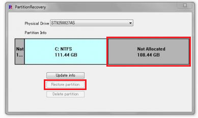 Selecteer nu de partitie Not Allocated , deze zal nu groen worden en de knop Restore partition zou nu moeten oplichten. Klik dan op de knop Restore Partition Lukt dit en is je partitie nu weer zichtbaar en kun je deze benaderen?