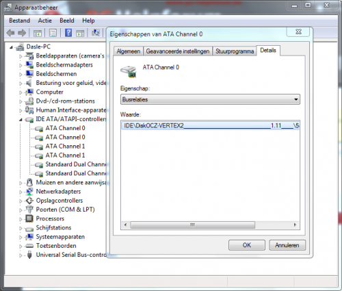 Windows 7 64bits heeft eigenlijk zin als je 4 GB of meer geheugen kan aanspreken. Als je in taakbeheer op het tabblad prestaties gaat kijken zal je zien dat het geheugen bijna heel gebruikt wordt wat ook een negatief effect heeft op de prestaties. Wat je ook nog even kan nakijken is de driver die voor je IDE-ATA controller gebruikt wordt. Ga eens naar apparaatheer en kijk onder IDE/ATAPI controllers. Selecteer een ATA channel en kies voor Eigenschappen en op het tabblad details blader je door de waardes en kijk of jij je Harddisk kunt terugvinden. Heb je je harddisk kunnen vinden kijk dan even op het tabblad Stuurprogramma wie de leverancier is hiervan