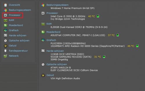 Download en installeer Speccy. Speccy is er ook in Nederlandstalige versie, bij de installatie (of update) kan je de taal wijzigen van Engels naar Nederlands ... als je op het driehoekje klikt, krijg je een uitrolmenu waarin je Nederlands kan selecteren. Wanneer, tijdens het installeren van Speccy, de optie aangeboden wordt om Google Chrome of Google Toolbar "gratis" mee te installeren dien je de vinkjes weg te halen, tenzij dit een bewuste keuze is. Start nu het programma en er zal een overzicht gemaakt worden van je hardware. Als dit gereed is selecteer je bovenaan "Bestand - Publiceer Snapshot" en vervolgens bevestig je die keuze met " Ja ". In het venster dat nu opent krijg je een link te zien, kopieer nu die link en plak die in je volgende bericht. Zo krijgen we een gedetailleerd overzicht van je hardware. Meer info over deze procedure lees je HIER.