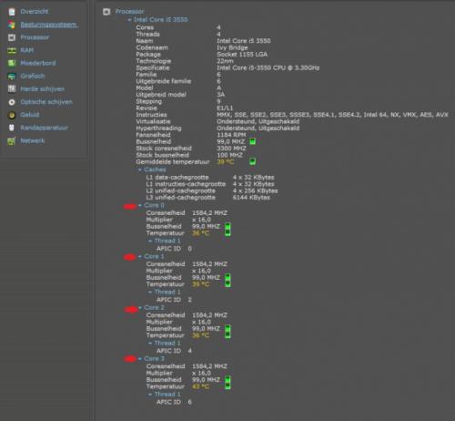 Ga eens via Start > Configuratiescherm en navigeer naar Energiebeheer. Op het tabblad Energiebeheerschema's staat vermeld welk schema jij gebruikt welke is dit? Wijzig dit anders eens naar Altijd aan en klik op Toepassen en OK. Herstart je pc en kijk dan eens met Speccy welke snelheid je processor nu aangeeft.