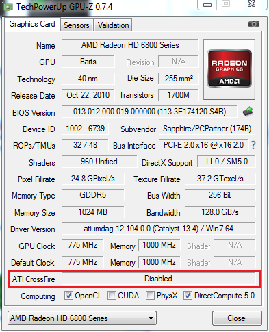 Download eens GPU-Z. je hoeft het niet te installeren want je kan het ook zo gebruiken. Kijk eens welke status er in GPU-Z word vermeld.