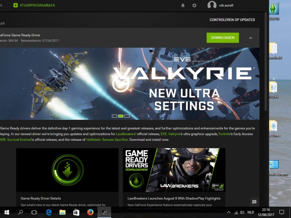 heb de verpakking hier bij me Palit Nvidia Geforce GT 740 -Complete Direct X support, including DirectX12* and lower -Full OpenGL 4.4 and lower support -Drivers included for window XP, Vista, 7 and 8 Volgens Speccy gebruik ik nu : Versie stuurprogramma 22.21.13.8205 Maar ik begreep dat ik beter het stuurprogramma installeerde dat ik hier doorkreeg, enkel lukt dat niet krijg ik die melding... De zwarte strepen bij het scrollen zijn nog steeds aanwezig bij Microsoft Edge. Bij Firefox wordt het soms helemaal zwart. Niets veranderd daar. -