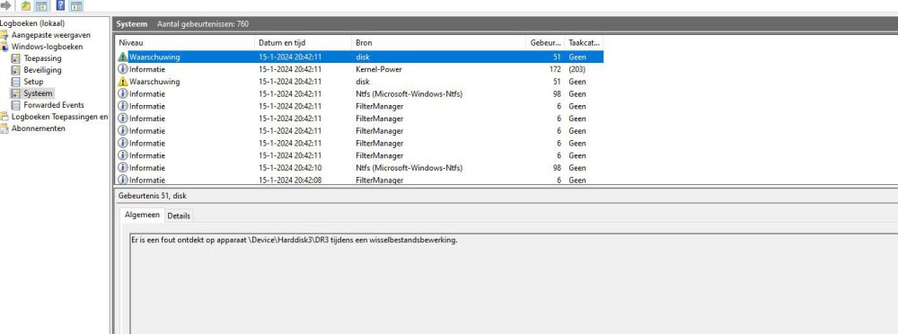 Is zie ook dat er een probleem is met een wisselbestandbewerking van schijf 3. Zou het daar mee te maken kunnen hebben? Heb de schijf gescand en geformatteerd!!