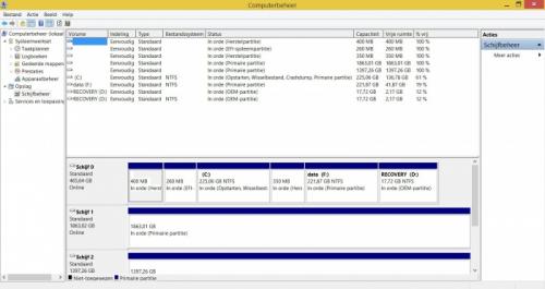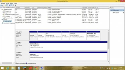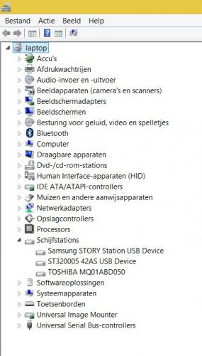 De schijven zijn zichtbaar op het schijfbeheer (zie bijlage). De derde schijf Toshiba is van de laptop zelf.