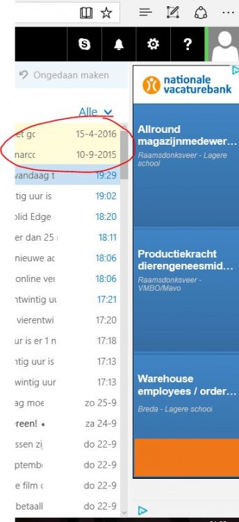 16. Sorry maar ik kreeg bovenstaande Quote niet verwijderd! Het is als ik met het programma werk dat het af en toe gebeurt maar is niet hinderlijk . Maar intussen heb ik andere topic geopend en twijfel of het verband heeft met dit probleem. Zie hiervoor naar de toegevoegde link. Laat maar weten of ik met deze topic verder moet of bij de recent geopende topic's ? http://www.pc-helpforum.be/topic/64488-windows-live-mailprogramma-verdwenen/ http://www.pc-helpforum.be/topic/64491-netwerk-gedecteerd/