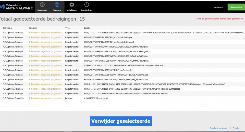 2. Juist een scan gedaan met MB en deze gaf aan dat er bedreigingen zijn gevonden intussen deze verwijderd. zie bijlage