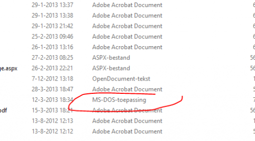 Het is een bestand wat ik in het verleden heb opgeslagen als kopie na het invullen van een formulier. Ik kan niet zien wat voor een bestand extensie het is , er wordt geen verdere info gegeven dan dat ik het bestand niet kan openen. Een andere kopie van dezelfde site is opgeslagen als een aspx-bestand , maar als ik dat open is dit niet te lezen . - - - Updated - - -