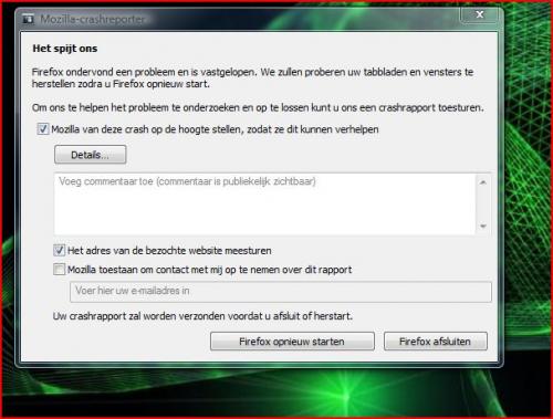 5. Van Mozilla onderstaand bericht ontvangen kan dit het probleem veroorzaken? De PC werkt bij het opstarten ook traag met het openen van bestanden, dus ...wat dat betreft ligt het dan niet aan Mozilla want ik dacht dat de samenwerking met google misschien dan toch het probleem veroorzaakt. Bij het herinitialiseren zag ik ook bij de 'oude gegevens dat Adblock nog in de lijst staan waarvan ik dacht die had verwijderd daar vanaf dat moment er problemen ondervond en heb die intussen verwijderd maar zie deze er nog in staan Ik vraag me veel af maar weet het werkelijk niet! Ik vraag