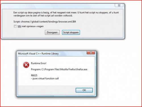 6. Deze middag opnieuw opgestart maar ondervind toch nog steeds het probleem. Het heeft ongeveer 10 min. geduurd voordat Mozilla -maar ook IE wilde opstarten! Krijg ook geregeld meldingen zoals Schokware plugin loopt vast, en zie de toegevoegde bijlages. Na ongeveer na ruim een half uur heeft de pc weer haar snelheid terug.....maar wat hiervan de oorzaak is ....?