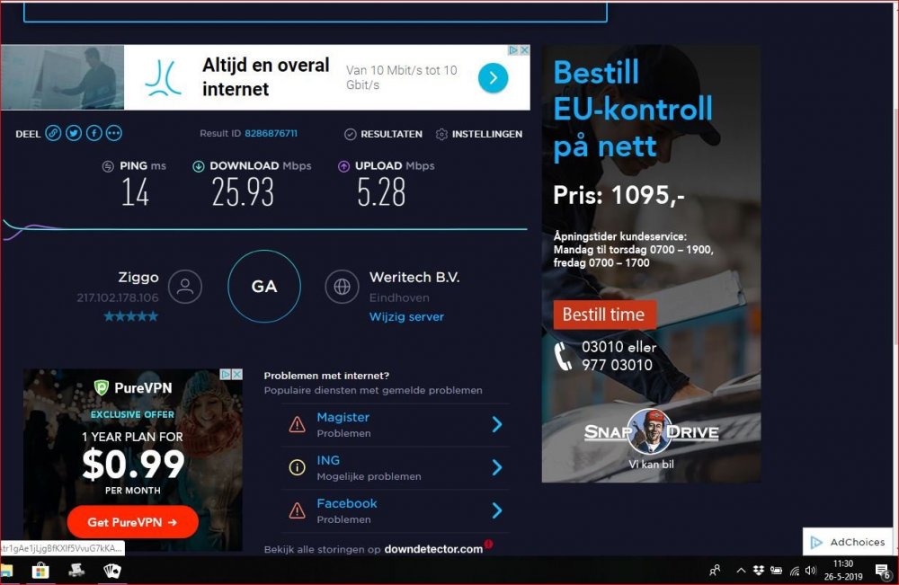 Alles werkt nu normaal weer te werken. Even nog een speedtest bijgevoegd indien dit nog nodig mocht zijn. Bedankt weer voor je hulp!
