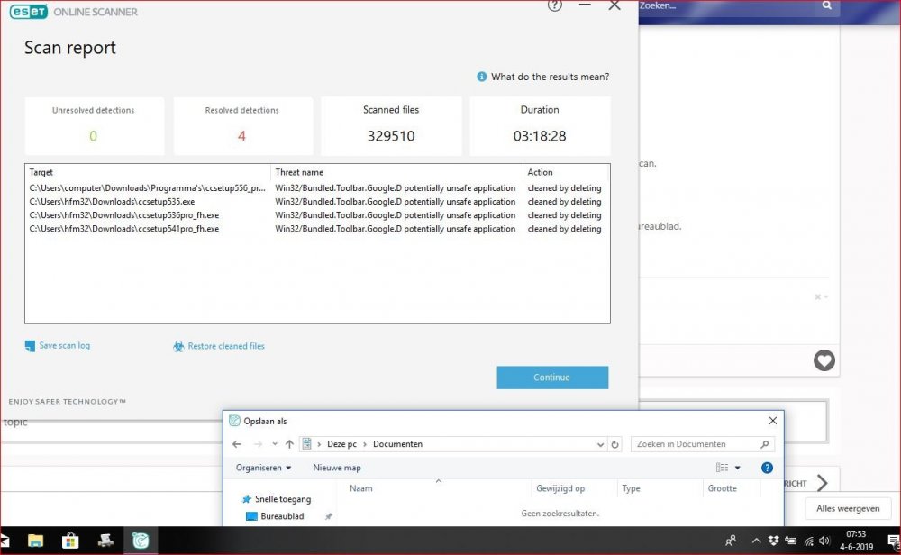 Er zijn bedreigingen gevonden maar kan het bestand niet opslaan . Ik heb een afbeelding gemaakt van het scherm maar wil voor ik het programma afsluit weten of ik de optie "Restoere cleaned Files< eerst maar doen.