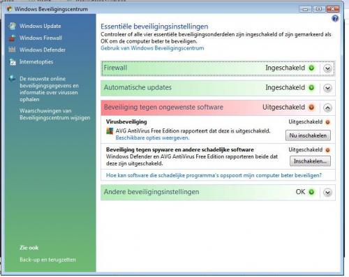 Vind het AVG programma niet meer terug in mijn programmaszeerover plaatste een topic in Archief Andere software Een goede week geledenhad ik ook reeds problemen op de rubriek andere sofware met als titel Een onbekende melding op mijn scherm. Ik had toen alle voorgestelde handelingen uitgevoerd en heb toen oa AVG terug geinstalleerd. Nu krijg ik de melding dat AVG niet in orde is zie bijlage en dit staat ook bij beveiligings waarschuwing Windows. Wanneer ik een updating wil doen gaat het niet. AVG is ook in het Engels geinstalleerd weet niet hoe dit kan. Hoe kan ik nu die AVG verwijderen want hij staat nergens ook niet in de lijst bij C Cleaner. Alvast bedankt