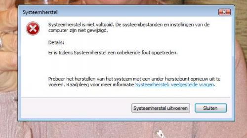 Een onbekende vermelding op mijn schermzeerover reageerde op zeerover's topic in Archief Andere software Hallo Stegisoft. Gisteren en vandaag nog maals hestelsysteem toegepast. Maar telkens het bericht is niet mogelijk. Dan geprobeerd het avg programma te verwijderen ...onmogelijk.Iedere keer dat ik de pc opstart no steeds het zelfde bericht. AVG mijn pc laten scannen alles ok . Ook C claener gebruikt niets abnormaals. Wat zijn de volgende mogelijkheden. Niet te moeilijk want ik ben geen specialist . mvg