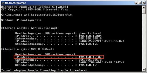 4. het ziet ernaar uit dat je laptop geen geldig IP-adres krijgt van je router. mogelijke oorzaken: - de instellingen van je draadloze netwerkkaart op je laptop moet je aanpassen (zie oplossing 2) - de router "herkent" je netwerkkaart niet (zie oplossing 1) - de router is beveiligd. (verbindingen zijn gecodeerd). Hierdoor moeten de instellingen van de router identiek zijn aan de instellingen, opgegeven bij je draadloze internetkaart zoniet ... geen geldig IP-adres mogelijke oplossingen: (simpelste eerst) 1. trek even de stroomvoorziening van je router uit gedurende een 10-tal seconden. Stop de stekker terug in het stopcontact (of achteraan als je het voedingskabeltje uittrekt). Soms lost dit je probleem op. 2. Achterhalen of je draadloze netwerkkaart over een geldig IP-adres beschikt. In het tekstvak onder Start / uitvoeren typ je cmd druk nu je return toets. Dit opent je "command-prompt console". In dit venster typ je ipconfig /all en drukt terug return meteen verschijnt een ganse lijst met o.a. informatie over de IP instellingen van je systeem. In de lijst zoek je jouw draadloze netwerkkaart, naast het IP-adres moet een waarde ingevuld zijn die op jouw eigen netwerksegment ligt (vb: 192.168.1.104). Als je niet zeker bent, post hier anders eens een screenshot. http://www.pc-helpforum.be/attachment.php?attachmentid=382&stc=1&d=1202898597 3. geen geldig IP-adres? via Configuratiescherm open je jouw netwerkverbindingen, duidt je draadloze netwerkkaart aan, klik met de rechter muistoets en kies de optie eigenschappen. In de lijst klik je éénmaal op Internet Protocol (TCP/IP) en nu op de knop eigenschappen (juist onder de lijst). Zet een vinkje naast de optie "automatisch een IP-adres verkrijgen" maar ook naast "automatisch een DNS-serveradres laten toewijzen" Druk nu 2 maal OK Als dat niet lukt, dan moeten we dieper ingaan op de instelling van de router, misschien beschik je over een handleiding bij je router en staat daar de nodige info hoe je dit doet. Elk merk van router heeft zo zijn eigen manieer om instellingen aan te passen. Meestal doe je dat via de internet-browser van je pc, door in de adresbalk het IP-adres van de router in te geven. Opgelet!!! Het instellen van je router voor draadloze communicatie, doe je best wanneer je laptop via een kabel verbonden is met de router. Dus nog even afwachten, misschien lukt het met de reeds eerder vermelde oplossingen. Sukses