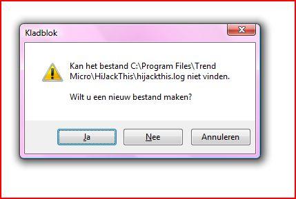 Ipv windows moest ik op Acer klikken, maar het ging Bedankt! hier is de log: Logfile of Trend Micro HijackThis v2.0.4 Scan saved at 18:16:05, on 7/07/2011 Platform: Windows Vista SP2 (WinNT 6.00.1906) MSIE: Internet Explorer v9.00 (9.00.8112.16421) Boot mode: Normal Running processes: C:\Windows\system32\taskeng.exe C:\Windows\system32\Dwm.exe C:\Windows\Explorer.EXE C:\Program Files\Acer Arcade Deluxe\Acer Arcade Deluxe\ArcadeDeluxeAgent.exe C:\Program Files\Acer Arcade Deluxe\Acer Arcade Deluxe\Kernel\CLML\CLMLSvc.exe C:\Program Files\Google\Google Desktop Search\GoogleDesktop.exe C:\Program Files\Realtek\Audio\HDA\RtHDVCpl.exe C:\Windows\PLFSetI.exe C:\Program Files\Apoint2K\Apoint.exe C:\Windows\system32\igfxsrvc.exe C:\Program Files\Launch Manager\LManager.exe C:\Program Files\NewTech Infosystems\Acer Backup Manager\BackupManagerTray.exe C:\Program Files\EgisTec Egis Software Update\EgisUpdate.exe C:\Program Files\EgisTec\MyWinLocker 3\x86\mwlDaemon.exe C:\Program Files\Acer Arcade Deluxe\PlayMovie\PMVService.exe C:\Program Files\ExtraFilm Designer BE NL\ExtraFilmManager.exe C:\Windows\system32\wbem\unsecapp.exe C:\Windows\System32\hkcmd.exe C:\Windows\System32\igfxpers.exe C:\Program Files\Samsung\EmoDio\SMSTray.exe C:\Program Files\Common Files\Java\Java Update\jusched.exe C:\Program Files\Malwarebytes' Anti-Malware\mbamgui.exe C:\Program Files\iTunes\iTunesHelper.exe C:\Program Files\Google\GoogleToolbarNotifier\GoogleToolbarNotifier.exe C:\Program Files\Windows Live\Messenger\msnmsgr.exe C:\Program Files\McAfee Security Scan\3.0.199\SSScheduler.exe C:\Program Files\Apoint2K\ApMsgFwd.exe C:\Program Files\Apoint2K\Apntex.exe C:\Program Files\Apoint2K\HidFind.exe C:\Program Files\Windows Media Player\wmpnscfg.exe C:\Users\MEMORI~1\AppData\Local\Temp\RtkBtMnt.exe C:\Program Files\Google\Google Desktop Search\GoogleDesktop.exe C:\Program Files\Acer\Acer PowerSmart Manager\ePowerTray.exe C:\Windows\system32\igfxext.exe C:\Windows\system32\wuauclt.exe C:\Program Files\Common Files\Java\Java Update\jucheck.exe C:\Users\MemoriesLastForever_\AppData\Local\Google\Chrome\Application\chrome.exe C:\Windows\system32\rundll32.exe C:\Users\MemoriesLastForever_\AppData\Local\Google\Chrome\Application\chrome.exe C:\Users\MemoriesLastForever_\AppData\Local\Google\Chrome\Application\chrome.exe C:\Windows\System32\mobsync.exe C:\Program Files\Microsoft Office\Office12\WINWORD.EXE C:\Users\MemoriesLastForever_\AppData\Local\Google\Chrome\Application\chrome.exe C:\Users\MemoriesLastForever_\AppData\Local\Google\Chrome\Application\chrome.exe C:\Users\MemoriesLastForever_\AppData\Local\Google\Chrome\Application\chrome.exe C:\Program Files\Trend Micro\HiJackThis\HiJackThis.exe R1 - HKCU\Software\Microsoft\Internet Explorer\Main,Default_Page_URL = MSN | Hotmail | Messenger | Nieuws, sport, entertainment, video, lifestyle, auto en nog veel meer, dat is MSN ! R0 - HKCU\Software\Microsoft\Internet Explorer\Main,Start Page = MSN | Hotmail | Messenger | Nieuws, sport, entertainment, video, lifestyle, auto en nog veel meer, dat is MSN ! R1 - HKLM\Software\Microsoft\Internet Explorer\Main,Default_Search_URL = Bing R1 - HKLM\Software\Microsoft\Internet Explorer\Main,Search Page = Bing R0 - HKLM\Software\Microsoft\Internet Explorer\Main,Start Page = iGoogle Redirect R0 - HKLM\Software\Microsoft\Internet Explorer\Search,SearchAssistant = R0 - HKLM\Software\Microsoft\Internet Explorer\Search,CustomizeSearch = R1 - HKCU\Software\Microsoft\Internet Explorer\Main,First Home Page = MSN | Hotmail | Messenger | Nieuws, sport, entertainment, video, lifestyle, auto en nog veel meer, dat is MSN ! R1 - HKCU\Software\Microsoft\Internet Explorer\Main,Window Title = Windows Internet Explorer wordt aangeboden door MSN and Bing R1 - HKCU\Software\Microsoft\Windows\CurrentVersion\Internet Settings,ProxyOverride = *.local R0 - HKCU\Software\Microsoft\Internet Explorer\Toolbar,LinksFolderName = O1 - Hosts: ::1 localhost O2 - BHO: AcroIEHelperStub - {18DF081C-E8AD-4283-A596-FA578C2EBDC3} - C:\Program Files\Common Files\Adobe\Acrobat\ActiveX\AcroIEHelperShim.dll O2 - BHO: (no name) - {5C255C8A-E604-49b4-9D64-90988571CECB} - (no file) O2 - BHO: Search Helper - {6EBF7485-159F-4bff-A14F-B9E3AAC4465B} - C:\Program Files\Microsoft\Search Enhancement Pack\Search Helper\SEPsearchhelperie.dll O2 - BHO: Windows Live Aanmelden - Help - {9030D464-4C02-4ABF-8ECC-5164760863C6} - C:\Program Files\Common Files\Microsoft Shared\Windows Live\WindowsLiveLogin.dll O2 - BHO: Google Toolbar Helper - {AA58ED58-01DD-4d91-8333-CF10577473F7} - C:\Program Files\Google\Google Toolbar\GoogleToolbar_32.dll O2 - BHO: Google Toolbar Notifier BHO - {AF69DE43-7D58-4638-B6FA-CE66B5AD205D} - C:\Program Files\Google\GoogleToolbarNotifier\5.6.5805.1910\swg.dll O2 - BHO: Java Plug-In 2 SSV Helper - {DBC80044-A445-435b-BC74-9C25C1C588A9} - C:\Program Files\Java\jre6\bin\jp2ssv.dll O2 - BHO: Windows Live Toolbar Helper - {E15A8DC0-8516-42A1-81EA-DC94EC1ACF10} - C:\Program Files\Windows Live\Toolbar\wltcore.dll O3 - Toolbar: (no name) - {CCC7A320-B3CA-4199-B1A6-9F516DD69829} - (no file) O3 - Toolbar: Google Toolbar - {2318C2B1-4965-11d4-9B18-009027A5CD4F} - C:\Program Files\Google\Google Toolbar\GoogleToolbar_32.dll O3 - Toolbar: &Windows Live Toolbar - {21FA44EF-376D-4D53-9B0F-8A89D3229068} - C:\Program Files\Windows Live\Toolbar\wltcore.dll O4 - HKLM\..\Run: [Windows Defender] %ProgramFiles%\Windows Defender\MSASCui.exe -hide O4 - HKLM\..\Run: [ArcadeDeluxeAgent] "C:\Program Files\Acer Arcade Deluxe\Acer Arcade Deluxe\ArcadeDeluxeAgent.exe" O4 - HKLM\..\Run: [CLMLServer] "C:\Program Files\Acer Arcade Deluxe\Acer Arcade Deluxe\Kernel\CLML\CLMLSvc.exe" O4 - HKLM\..\Run: [Google Desktop Search] "C:\Program Files\Google\Google Desktop Search\GoogleDesktop.exe" /startup O4 - HKLM\..\Run: [RtHDVCpl] C:\Program Files\Realtek\Audio\HDA\RtHDVCpl.exe O4 - HKLM\..\Run: [skytel] C:\Program Files\Realtek\Audio\HDA\Skytel.exe O4 - HKLM\..\Run: [PLFSetI] C:\Windows\PLFSetI.exe O4 - HKLM\..