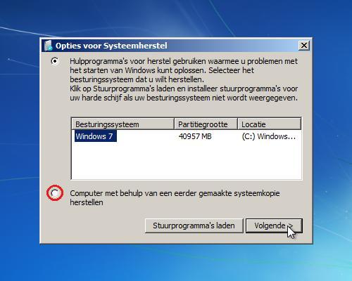 Systeemherstel nu vanop cd, daarvoor vanop PC en dit resulteerde in opnieuw opstarten of BSOD. Nu dus CD en nu zit ik in de fase van de vorige foto's. -