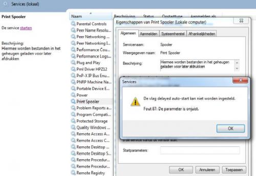 Hallo, Telkens mijn pc opstart is de service printspooler niet actief. Dus...ik ga naar services en ik zet PrintSpooler op automatisch (vertraagd starten) en dan komt de foutmelding: de vlag delayed auto-start ... (zie bijlage afbeelding) Thuurke