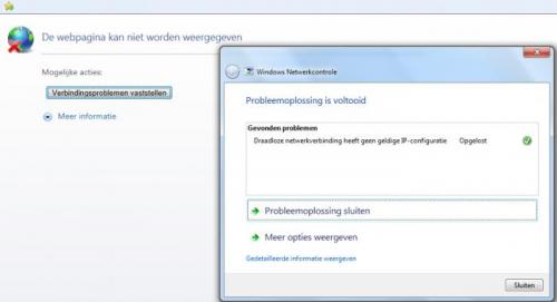 Eerst en vooral wanneer ik de laptop aangezet had, was er weer een probleem met de internetverbinding. Op Google Chrome kun je dat zo niet oplossen, maar wel op internet explorer 9 door op verbindingsproblemen vaststellen te drukken. Dit kon mijn verbinding herstellen, in bijlage zit daar een printscreen van. Ook heb ik in de opdrachtpomp gedaan wat je vroeg ... ipconifg.txt