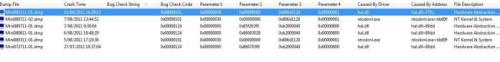 K had nu pas door dat je alle gegevens kunt opslaan hier komt het dus: ================================================== Dump File : Mini081111-01.dmp Crash Time : 11/08/2011 16:39:13 Bug Check String : Bug Check Code : 0x00000101 Parameter 1 : 0x00000030 Parameter 2 : 0x00000000 Parameter 3 : 0x806d1120 Parameter 4 : 0x00000001 Caused By Driver : hal.dll Caused By Address : hal.dll+770c File Description : Hardware Abstraction Layer DLL Product Name : Microsoft® Windows® Operating System Company : Microsoft Corporation File Version : 6.0.6002.18005 (lh_sp2rtm.090410-1830) Processor : 32-bit Crash Address : ntoskrnl.exe+bb89f Stack Address 1 : ntoskrnl.exe+6cfba Stack Address 2 : ntoskrnl.exe+6e6fd Stack Address 3 : ntoskrnl.exe+6c22a Computer Name : Full Path : C:\Windows\Minidump\Mini081111-01.dmp Processors Count : 4 Major Version : 15 Minor Version : 6002 Dump File Size : 155.144 ================================================== ================================================== Dump File : Mini080711-02.dmp Crash Time : 7/08/2011 13:44:52 Bug Check String : Bug Check Code : 0x00000101 Parameter 1 : 0x00000030 Parameter 2 : 0x00000000 Parameter 3 : 0x806d1120 Parameter 4 : 0x00000001 Caused By Driver : ntoskrnl.exe Caused By Address : ntoskrnl.exe+bb89f File Description : NT Kernel & System Product Name : Microsoft® Windows® Operating System Company : Microsoft Corporation File Version : 6.0.6002.18484 (vistasp2_gdr.110617-0336) Processor : 32-bit Crash Address : ntoskrnl.exe+bb89f Stack Address 1 : ntoskrnl.exe+6cfba Stack Address 2 : ntoskrnl.exe+6e6fd Stack Address 3 : ntoskrnl.exe+6c27b Computer Name : Full Path : C:\Windows\Minidump\Mini080711-02.dmp Processors Count : 4 Major Version : 15 Minor Version : 6002 Dump File Size : 153.456 ================================================== ================================================== Dump File : Mini080711-01.dmp Crash Time : 7/08/2011 9:30:04 Bug Check String : Bug Check Code : 0x00000124 Parameter 1 : 0x00000000 Parameter 2 : 0x85f263f0 Parameter 3 : 0xb2000040 Parameter 4 : 0x00000800 Caused By Driver : hal.dll Caused By Address : hal.dll+69dd File Description : Hardware Abstraction Layer DLL Product Name : Microsoft® Windows® Operating System Company : Microsoft Corporation File Version : 6.0.6002.18005 (lh_sp2rtm.090410-1830) Processor : 32-bit Crash Address : ntoskrnl.exe+bb89f Stack Address 1 : hal.dll+69dd Stack Address 2 : ntoskrnl.exe+af03c Stack Address 3 : hal.dll+68f1 Computer Name : Full Path : C:\Windows\Minidump\Mini080711-01.dmp Processors Count : 4 Major Version : 15 Minor Version : 6002 Dump File Size : 155.520 ================================================== ================================================== Dump File : Mini080611-01.dmp Crash Time : 6/08/2011 16:48:29 Bug Check String : Bug Check Code : 0x00000124 Parameter 1 : 0x00000000 Parameter 2 : 0x86063028 Parameter 3 : 0xb2000040 Parameter 4 : 0x00000800 Caused By Driver : hal.dll Caused By Address : hal.dll+69dd File Description : Hardware Abstraction Layer DLL Product Name : Microsoft® Windows® Operating System Company : Microsoft Corporation File Version : 6.0.6002.18005 (lh_sp2rtm.090410-1830) Processor : 32-bit Crash Address : ntoskrnl.exe+bb89f Stack Address 1 : hal.dll+69dd Stack Address 2 : ntoskrnl.exe+af03c Stack Address 3 : hal.dll+68f1 Computer Name : Full Path : C:\Windows\Minidump\Mini080611-01.dmp Processors Count : 4 Major Version : 15 Minor Version : 6002 Dump File Size : 155.312 ================================================== ================================================== Dump File : Mini080511-01.dmp Crash Time : 5/08/2011 17:19:38 Bug Check String : Bug Check Code : 0x00000101 Parameter 1 : 0x00000030 Parameter 2 : 0x00000000 Parameter 3 : 0x806d1120 Parameter 4 : 0x00000001 Caused By Driver : ntoskrnl.exe Caused By Address : ntoskrnl.exe+bb89f File Description : NT Kernel & System Product Name : Microsoft® Windows® Operating System Company : Microsoft Corporation File Version : 6.0.6002.18484 (vistasp2_gdr.110617-0336) Processor : 32-bit Crash Address : ntoskrnl.exe+bb89f Stack Address 1 : ntoskrnl.exe+6cfba Stack Address 2 : ntoskrnl.exe+6e6fd Stack Address 3 : ntoskrnl.exe+2e6f5 Computer Name : Full Path : C:\Windows\Minidump\Mini080511-01.dmp Processors Count : 4 Major Version : 15 Minor Version : 6002 Dump File Size : 155.600 ================================================== ================================================== Dump File : Mini072711-01.dmp Crash Time : 27/07/2011 10:37:04 Bug Check String : Bug Check Code : 0x00000124 Parameter 1 : 0x00000000 Parameter 2 : 0x860703f0 Parameter 3 : 0xb2000040 Parameter 4 : 0x00000800 Caused By Driver : hal.dll Caused By Address : hal.dll+69dd File Description : Hardware Abstraction Layer DLL Product Name : Microsoft® Windows® Operating System Company : Microsoft Corporation File Version : 6.0.6002.18005 (lh_sp2rtm.090410-1830) Processor : 32-bit Crash Address : ntoskrnl.exe+bb89f Stack Address 1 : hal.dll+69dd Stack Address 2 : ntoskrnl.exe+af03c Stack Address 3 : hal.dll+68f1 Computer Name : Full Path : C:\Windows\Minidump\Mini072711-01.dmp Processors Count : 4 Major Version : 15 Minor Version : 6002 Dump File Size : 155.600 ==================================================