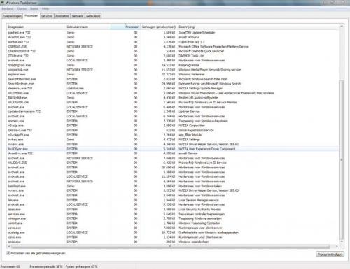 Mijn processor gebruik schit van het ene naar het andere heel hoog of laag, ook als ik niks doe! En hij blijft altijd tussen de 50% en 90%! Hierdoor gaan mijn spellen haperen en/of vastlopen. Dit vind ik iritant, en het is een Windows 7 PC! Nu dat ik toch bezig ben het virtueel geheugen gebruik staat ook hoog tussen 50% en 70%. Hierdoor gaat mijn spellen haperen en (de rest weer je wel)... Dus hoe kan ik dit verlagen??? groeten en bedankt! Janvanhethek -