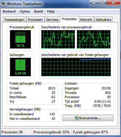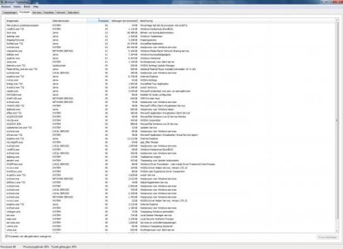 Dat klopt dat er staat 20% of 30% maar toen was de PC net opgestart (anders kon het lang duren voordat ik een reactie kon sturen). Zoals ik al zei, als de PC iets moet doen gaat hij tussen de 80% en 90% soms 100%. Ben nu bezig met het downloaden en het installeren van servicepack 1. -