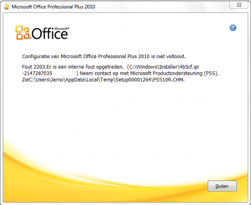 Hoi, Het begon allemaal gisteren. Ik wou even een samenvatting maken en toen kwam dit: En in de vakantie zij hij ook iets dat de licentie niet kan controleren. Er miste een bestand die in C:\Config.Msi moest staan, zodat hij de licentie kon controleren. Dus eh... Ik weet niet hoe ik dit op moet lossen maar hopelijk jullie wel. Ik hoop dat jullie iets weten want ik heb Office heel hard nodig!!!! Een snel antwoord zal fijn zijn!!!!