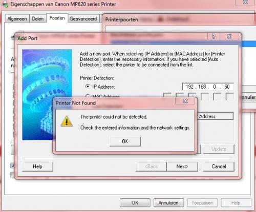 Printer (Canon MP620) wil niet op het draadloze netwerk