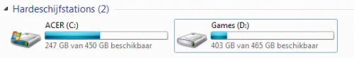 Het probleem is opgelost xD In de D schijf staan inderdaad alleen spellen en werkprogramma's. Echter stond er ook een bestand, aangemaakt waarschijnlijk door PS3 Server (om draadloos bestanden naar de PS3 te sturen). Deze was steeds maar 0 kb als ik het controleerde, maar deze reserveert waarschijnlijk ruimte voor de films en muziek die ik beschikbaar heb staan voor de PS3. Ik heb dit bestand inmiddels verwijderd, en ik heb weer gewoon mijn zeer gemiste 440Gb beschikbaar. De update heb ik aangezet, is nu al bijna klaar. Hartelijk dank voor jullie hulp.