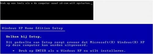 3. Vanaf figuur 1, druk op Enter als u Windows XP nu wilt installeren. Daar gaat het fout, dan reageert niets meer. Volgens mij heeft hij dan een toetsenbord nodig met dat bewuste paarse ronde stekkertje, maar daar zit op de pc weer geen aansluiting meer voor op.
