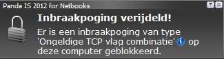 9. Beste Helpers, al enige tijd krijg ik op mijn laptop de melding dat er is ingebroken op ons netwerk. Ik heb al eens eerder een topic geopend omdat mijn zus dacht dat er op haar Computer ook is ingebroken. Ik kreeg dus al een tijdje de melding van Panda Antivirus dat er is ingebroken met een bepaald IP-adres. Ik denk dat ik telkens heb geklikt op: Dit adres blokkeren. MAAR HIER BEN IK NIET ZEKER VAN. Gisteren zei mama dat er op haar netbook deze melding ook is verschenen van Panda Antivirus, en op mijn zus haar laptop ook nog eens. Wat is er hier aan te doen? Graag verdere hulp, want om eerlijk te zijn ben ik wel bang nu... Vincent