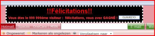 Sinds kort heb ik een irritant probleem bij hotmail. Eerst dacht ik dat het pop-ups waren maar ik krijg ze niet weggeklikt, integendeel, dat opent zich steeds in een apart venster. Franstalige schreeuwerige dingen die flikkeren en boven op een vaste plaats bij hotmail staan. Is dit een nieuw fenomeen van hotmail of is't een virus?