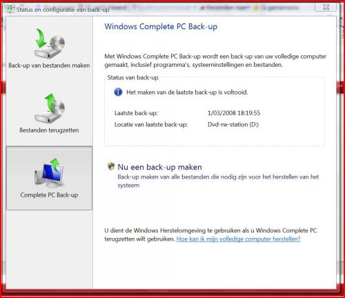 Ik moet een aanvulling maken blijkbaar is dit niet voor alle Vista-versies: "B. Windows BitLocker-stationsversleuteling en Complete PC Back-up en terugzetten zijn beschikbaar in Windows Vista Business en Windows Vista Ultimate." -