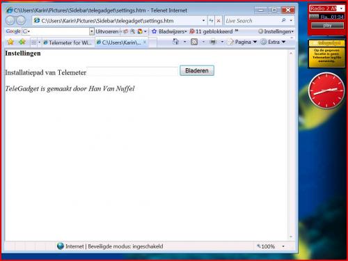 , dat wist ik niet. Ik dacht dat het telegadget op zich kon bestaan. Dus telemeter heb ik geïnstalleerd. Nu bleef mijn probleem dat ik bij het telegadget niks kon aanklikken of typen. Maar...... ik heb het probleem zelf gevonden. Om al de gadgets "volledig" te hebben op uw sidebar moet uw lettertype op standaard staan (= 96 DPI). Bij mij staat het op 144 DPI. Groter lettertype dus wat maakt dat je een deel tekst "verliest". In de bijlage kun je dit goed zien. Nu is ook mijn radiooke niet volledig (stop en dempen is niet zichtbaar, kan nog enkel het randje aanklikken.)