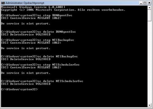 OK, doen we. C:\Program Files\NewTech Infosystems\NTI Backup Now 5 bevat 1 map "Logs" met 3 notepad bestanden (logjes) inhoud BackupSvc (1 Kb) [2011-07-04 00:50:24] Service is listening... [2011-07-04 00:56:29] BackupSvc end... inhoud Jobs (0 Kb) = leeg inhoud Scheduler (1 Kb) [2011-07-04 00:56:29] service stop C:\Program Files\NewTech Infosystems\NTI Backup Now 5 manueel deleten?