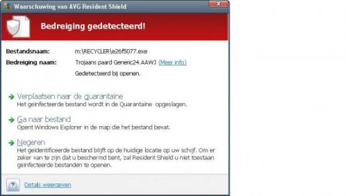 Nee. snelkoppeling verwijst zowel op usb als hdd naar een map recycler\e26f5077.exe die map recycler stond er vroeger ook niet op bij de hdd geeft AVG hierop de melding van een trojaans paard. eigenlijk zijn mijn mappen verdwenen en zie ik enkel snelkoppelingen, ook met andere namen die naar een exe bestand leiden. als je bv een virusscan door de externe hdd laat gaan, zie je mooi alle vertrouwde bestanden op dee externe hdd verschijnen in de virusscan bij de bestanden die hij op dat ogenblik aan het doorlopen is. ook zie je bv dat die extne hdd nog steeds voor de helft vol staat met onze gegevens. melding op usb bij dubbel klik melding op externe hdd bij dubbel klik als ik hier aanklik ga toch naar het bestand krijg ik dezelfde mededeling als bij de USB
