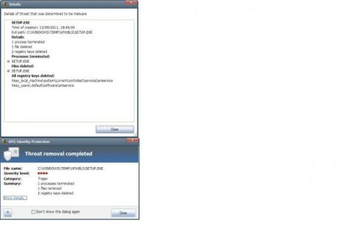hoop dat het gelukt is. had de hdd opnieuw door McAfee laten scannen. Kreeg nu bij opstart volgende melding vanavond stel ik vast dat Combofix niet meer op mijn bureaublad stond. Heb het opnieuw geinstalleerd + bestanje aangemaakt in kladblok met File:: c:\windows\Tasks\SmartDefrag.job en dit in het nieuwe ComboFix icoon gesleept. Kreeg wel melding bij opmaak van rapport ComboFix duurt op deze PC ruim 1 uur. Dus mijn AVG springt regelmatig terug aan. Hopelijk geen probleem? ComboFix 11-09-14.02 - diederik 14/09/2011 20:57:05.2.1 - x86 Microsoft Windows XP Professional 5.1.2600.3.1252.32.1043.18.1023.408 [GMT 2:00] Gestart vanuit: c:\documents and settings\diederik\Bureaublad\ComboFix.exe gebruikte Opdracht switches :: c:\documents and settings\diederik\Bureaublad\CFScript.txt AV: AVG Anti-Virus Free Edition 2011 *Disabled/Updated* {17DDD097-36FF-435F-9E1B-52D74245D6BF} FW: NVIDIA Firewall *Disabled* {EDC10449-64D1-46c7-A59A-EC20D662F26D} * Nieuw herstelpunt werd aangemaakt . FILE :: "c:\windows\Tasks\SmartDefrag.job" . . (((((((((((((((((((((((((((((((((( Andere Verwijderingen ))))))))))))))))))))))))))))))))))))))))))))))))) . . c:\documents and settings\diederik\Local Settings\Application Data\ApplicationHistory c:\documents and settings\diederik\Local Settings\Application Data\ApplicationHistory\hppusg.exe.fd0c032d.ini.inuse Pass LEGAL for license information. Built Sat Jun 25 23:20 2011c:\windows\IsUn0413.exe . . (((((((((((((((((((( Bestanden Gemaakt van 2011-08-14 to 2011-09-14 )))))))))))))))))))))))))))))) . . 2011-09-14 19:25 . 2011-09-14 19:25 -------- d-----w- c:\documents and settings\diederik\Local Settings\Application Data\ApplicationHistory 2011-08-28 17:54 . 2011-08-28 17:54 -------- d-----w- c:\documents and settings\diederik\Application Data\AVG10 2011-08-28 17:37 . 2011-09-14 18:38 -------- d-----w- c:\windows\system32\drivers\AVG 2011-08-28 17:37 . 2011-09-13 18:07 -------- d-----w- c:\documents and settings\All Users\Application Data\AVG10 2011-08-28 17:35 . 2011-08-28 17:35 -------- d-----w- C:\$AVG 2011-08-28 17:28 . 2011-08-28 17:28 -------- d--h--w- c:\documents and settings\All Users\Application Data\Common Files 2011-08-28 17:28 . 2011-08-28 17:55 -------- d-----w- c:\documents and settings\All Users\Application Data\MFAData 2011-08-28 15:48 . 2011-08-28 15:48 -------- d-----w- c:\documents and settings\diederik\Application Data\Malwarebytes 2011-08-28 15:48 . 2011-07-06 17:52 41272 ----a-w- c:\windows\system32\drivers\mbamswissarmy.sys 2011-08-28 15:48 . 2011-08-28 15:48 -------- d-----w- c:\documents and settings\All Users\Application Data\Malwarebytes 2011-08-28 15:48 . 2011-08-28 15:48 -------- d-----w- c:\program files\Malwarebytes' Anti-Malware 2011-08-28 15:48 . 2011-07-06 17:52 22712 ----a-w- c:\windows\system32\drivers\mbam.sys 2011-08-28 15:10 . 2011-08-28 15:10 388096 ----a-r- c:\documents and settings\diederik\Application Data\Microsoft\Installer\{45A66726-69BC-466B-A7A4-12FCBA4883D7}\HiJackThis.exe 2011-08-28 15:10 . 2011-08-28 15:10 -------- d-----w- c:\program files\Trend Micro . . . ((((((((((((((((((((((((((((((((((((((( Find3M Rapport )))))))))))))))))))))))))))))))))))))))))))))))))))) . 2011-08-13 10:56 . 2004-08-04 12:00 12528 ----a-w- c:\windows\system32\drivers\secdrv.sys 2011-07-27 10:06 . 2007-08-12 13:52 43520 ----a-w- c:\windows\system32\CmdLineExt03.dll 2011-07-15 13:29 . 2004-08-04 12:00 456320 ----a-w- c:\windows\system32\drivers\mrxsmb.sys 2011-07-08 14:02 . 2004-08-04 12:00 10496 ----a-w- c:\windows\system32\drivers\ndistapi.sys 2011-06-24 14:10 . 2006-12-22 20:45 139656 ----a-w- c:\windows\system32\drivers\rdpwd.sys 2011-06-23 18:31 . 2004-08-04 12:00 916480 ----a-w- c:\windows\system32\wininet.dll 2011-06-23 18:31 . 2004-08-04 12:00 43520 ----a-w- c:\windows\system32\licmgr10.dll 2011-06-23 18:31 . 2004-08-04 12:00 1469440 ------w- c:\windows\system32\inetcpl.cpl 2011-06-23 12:05 . 2004-08-04 12:00 385024 ----a-w- c:\windows\system32\html.iec 2011-06-20 17:44 . 2004-08-04 12:00 293888 ----a-w- c:\windows\system32\winsrv.dll 2004-07-09 03:08 . 2004-07-09 03:08 472576 ----a-w- c:\program files\dxsetup.exe 2004-07-09 03:08 . 2004-07-09 03:08 2242560 ----a-w- c:\program files\dsetup32.dll 2004-07-09 02:03 . 2004-07-09 02:03 62976 ----a-w- c:\program files\DSETUP.dll . . ((((((((((((((((((((((((((((( SnapShot@2011-09-13_18.14.18 ))))))))))))))))))))))))))))))))))))))))) . + 2011-09-14 19:21 . 2011-09-14 19:21 16384 c:\windows\Temp\Perflib_Perfdata_874.dat . ((((((((((((((((((((((((((((((((((((( Reg Opstartpunten ))))))))))))))))))))))))))))))))))))))))))))))))))) . . *Nota* lege verwijzingen & legitieme standaard verwijzingen worden niet getoond REGEDIT4 . [HKEY_LOCAL_MACHINE\SOFTWARE\Microsoft\Windows\CurrentVersion\Run] "HPUsageTracking"="c:\program files\HP\HP UT\bin\hppusg.exe" [2007-05-04 36864] "nwiz"="c:\program files\NVIDIA Corporation\nView\nwiz.exe" [2009-07-08 1657376] "NvCplDaemon"="c:\windows\system32\NvCpl.dll" [2009-07-14 13877248] "NvMediaCenter"="c:\windows\system32\NvMcTray.dll" [2009-07-14 86016] "Adobe Reader Speed Launcher"="c:\program files\Adobe\Reader 8.0\Reader\Reader_sl.exe" [2008-10-15 39792] "SunJavaUpdateSched"="c:\program files\Common Files\Java\Java Update\jusched.exe" [2010-05-14 248552] "SearchSettings"="c:\program files\Common Files\Spigot\Search Settings\SearchSettings.exe" [2011-06-24 534880] "Malwarebytes' Anti-Malware"="c:\program files\Malwarebytes' Anti-Malware\mbamgui.exe" [2011-07-06 449584] "AVG_TRAY"="c:\program files\AVG\AVG10\avgtray.exe" [2011-04-18 2334560] "QuickTime Task"="c:\program files\QuickTime\qttask.exe" [2008-11-04 413696] . [HKEY_USERS\.DEFAULT\Software\Microsoft\Windows\CurrentVersion\Run] "CTFMON.EXE"="c:\windows\system32\CTFMON.EXE" [2008-04-14 15360] "DWQueuedReporting"="c:\progra~1\COMMON~1\MICROS~1\DW\dwtrig20.exe" [2007-02-25 437160] "AdobeUpdater"="c:\program files\Common Files\Adobe\Updater5\AdobeUpdater.exe" [2008-11-12 2356088] . [HKEY_LOCAL_MACHINE\system\current