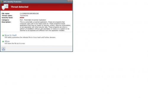 idd als administrator in de cmd gedelete, en het staat niet meer in het logje van HijackThis Logfile of Trend Micro HijackThis v2.0.4 Scan saved at 8:10:09, on 31/08/2011 Platform: Windows Vista SP2 (WinNT 6.00.1906) MSIE: Internet Explorer v9.00 (9.00.8112.16421) Boot mode: Normal Running processes: C:\Windows\system32\Dwm.exe C:\Windows\system32\taskeng.exe C:\Windows\Explorer.EXE C:\Program Files\Intel\Intel Matrix Storage Manager\IAAnotif.exe C:\Windows\RtHDVCpl.exe C:\Program Files\Synaptics\SynTP\SynTPEnh.exe C:\Program Files\Microsoft Office\Office12\GrooveMonitor.exe C:\Program Files\HP\HP UT\bin\hppusg.exe C:\Program Files\AVG\AVG9\avgtray.exe C:\Windows\WindowsMobile\wmdSync.exe C:\Program Files\Belgium Identity Card\beid35gui.exe C:\Windows\System32\igfxtray.exe C:\Windows\System32\hkcmd.exe C:\Windows\System32\igfxpers.exe C:\Program Files\Malwarebytes' Anti-Malware\mbamgui.exe C:\Windows\system32\igfxsrvc.exe C:\Program Files\IObit\Advanced SystemCare 4\ASCTray.exe C:\Program Files\Google\GoogleToolbarNotifier\GoogleToolbarNotifier.exe C:\Program Files\Microsoft Office\Office12\OUTLOOK.EXE C:\Users\diederik\AppData\Local\Google\Chrome\Application\chrome.exe C:\Users\diederik\AppData\Local\Google\Chrome\Application\chrome.exe C:\Windows\system32\rundll32.exe C:\Users\diederik\AppData\Local\Google\Chrome\Application\chrome.exe C:\Program Files\Trend Micro\HiJackThis\HiJackThis.exe R1 - HKCU\Software\Microsoft\Internet Explorer\Main,Search Bar = Preserve R1 - HKCU\Software\Microsoft\Internet Explorer\Main,Search Page = Google R0 - HKCU\Software\Microsoft\Internet Explorer\Main,Start Page = Google R1 - HKLM\Software\Microsoft\Internet Explorer\Main,Default_Page_URL = iGoogle Redirect R1 - HKLM\Software\Microsoft\Internet Explorer\Main,Default_Search_URL = Google R1 - HKLM\Software\Microsoft\Internet Explorer\Main,Search Page = Google R0 - HKLM\Software\Microsoft\Internet Explorer\Main,Start Page = Google R1 - HKCU\Software\Microsoft\Windows\CurrentVersion\Internet Settings,ProxyOverride = *.local O2 - BHO: AcroIEHelperStub - {18DF081C-E8AD-4283-A596-FA578C2EBDC3} - C:\Program Files\Common Files\Adobe\Acrobat\ActiveX\AcroIEHelperShim.dll O2 - BHO: WormRadar.com IESiteBlocker.NavFilter - {3CA2F312-6F6E-4B53-A66E-4E65E497C8C0} - C:\Program Files\AVG\AVG9\avgssie.dll O2 - BHO: Groove GFS Browser Helper - {72853161-30C5-4D22-B7F9-0BBC1D38A37E} - C:\Program Files\Microsoft Office\Office12\GrooveShellExtensions.dll O2 - BHO: Google Toolbar Helper - {AA58ED58-01DD-4d91-8333-CF10577473F7} - C:\Program Files\Google\Google Toolbar\GoogleToolbar_32.dll O2 - BHO: SkypeIEPluginBHO - {AE805869-2E5C-4ED4-8F7B-F1F7851A4497} - C:\Program Files\Skype\Toolbars\Internet Explorer\skypeieplugin.dll O2 - BHO: Google Toolbar Notifier BHO - {AF69DE43-7D58-4638-B6FA-CE66B5AD205D} - C:\Program Files\Google\GoogleToolbarNotifier\5.6.5805.1910\swg.dll O4 - HKLM\..\Run: [Windows Defender] %ProgramFiles%\Windows Defender\MSASCui.exe -hide O4 - HKLM\..\Run: [iAAnotif] C:\Program Files\Intel\Intel Matrix Storage Manager\iaanotif.exe O4 - HKLM\..\Run: [RtHDVCpl] RtHDVCpl.exe O4 - HKLM\..\Run: [synTPEnh] C:\Program Files\Synaptics\SynTP\SynTPEnh.exe O4 - HKLM\..\Run: [LManager] C:\PROGRA~1\LAUNCH~1\QtZyEmachine.EXE O4 - HKLM\..\Run: [GrooveMonitor] "C:\Program Files\Microsoft Office\Office12\GrooveMonitor.exe" O4 - HKLM\..\Run: [skytel] Skytel.exe O4 - HKLM\..\Run: [HPUsageTracking] C:\Program Files\HP\HP UT\bin\hppusg.exe "C:\Program Files\HP\HP UT\" O4 - HKLM\..\Run: [AVG9_TRAY] C:\PROGRA~1\AVG\AVG9\avgtray.exe O4 - HKLM\..\Run: [Windows Mobile-based device management] %windir%\WindowsMobile\wmdSync.exe O4 - HKLM\..\Run: [Adobe Reader Speed Launcher] "C:\Program Files\Adobe\Reader 9.0\Reader\Reader_sl.exe" O4 - HKLM\..\Run: [Adobe ARM] "C:\Program Files\Common Files\Adobe\ARM\1.0\AdobeARM.exe" O4 - HKLM\..\Run: [beid] "C:\Program Files\Belgium Identity Card\beid35gui.exe" /startup O4 - HKLM\..\Run: [igfxTray] C:\Windows\system32\igfxtray.exe O4 - HKLM\..\Run: [HotKeysCmds] C:\Windows\system32\hkcmd.exe O4 - HKLM\..\Run: [Persistence] C:\Windows\system32\igfxpers.exe O4 - HKLM\..\Run: [Malwarebytes' Anti-Malware] "C:\Program Files\Malwarebytes' Anti-Malware\mbamgui.exe" /starttray O4 - HKLM\..\Run: [Malwarebytes' Anti-Malware (reboot)] "C:\Program Files\Malwarebytes' Anti-Malware\mbam.exe" /runcleanupscript O4 - HKCU\..\Run: [Advanced SystemCare 4] C:\Program Files\IObit\Advanced SystemCare 4\ASCTray.exe O4 - HKCU\..\Run: [swg] "C:\Program Files\Google\GoogleToolbarNotifier\GoogleToolbarNotifier.exe" O4 - HKCU\..\Run: [Google Update] "C:\Users\diederik\AppData\Local\Google\Update\GoogleUpdate.exe" /c O9 - Extra button: Verzenden naar OneNote - {2670000A-7350-4f3c-8081-5663EE0C6C49} - C:\PROGRA~1\MICROS~2\Office12\ONBttnIE.dll O9 - Extra 'Tools' menuitem: Verz&enden naar OneNote - {2670000A-7350-4f3c-8081-5663EE0C6C49} - C:\PROGRA~1\MICROS~2\Office12\ONBttnIE.dll O9 - Extra button: Skype Plug-In - {898EA8C8-E7FF-479B-8935-AEC46303B9E5} - C:\Program Files\Skype\Toolbars\Internet Explorer\skypeieplugin.dll O9 - Extra 'Tools' menuitem: Skype Plug-In - {898EA8C8-E7FF-479B-8935-AEC46303B9E5} - C:\Program Files\Skype\Toolbars\Internet Explorer\skypeieplugin.dll O9 - Extra button: Research - {92780B25-18CC-41C8-B9BE-3C9C571A8263} - C:\PROGRA~1\MICROS~2\Office12\REFIEBAR.DLL O11 - Options group: [ACCELERATED_GRAPHICS] Accelerated graphics O16 - DPF: {4ED4AAA0-2CEC-4D84-AB72-74E53E092CFD} (BiblioNetCtrl Class) - http://www.freehandmusic.com/update/biblionet.cab O16 - DPF: {6414512B-B978-451D-A0D8-FCFDF33E833C} (WUWebControl Class) - http://www.update.microsoft.com/windowsupdate/v6/V5Controls/en/x86/client/wuweb_site.cab?1283280653485 O16 - DPF: {6A4F3A11-99B7-4BD1-AF88-B7354D1DAECD} - http://www.freehandmusic.com/update/soleromusiccontrol.cab O16 - DPF: {8100D56A-5661-482C-BEE8-AFECE305D968} (Facebook Photo Uploader 5 Control) - http://upload.facebook.com/controls/2009.07.28_v5.5.8.1/FacebookPhotoUploader55.cab O16 - DPF: 