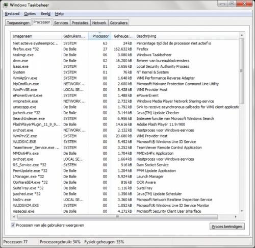 Alvast bedankt! Hieronder de gevraagde informatie/feedback. (1) Speccy snapshot: http://speccy.piriform.com/results/qdiDWyfx7Ni3OChMnj3etBV (2) Schijfcontrole is gebeurd maar heeft niet echt iets opgeleverd. Er zijn geen beschadigde onderdelen (of clusters zoals het noemde) gevonden. (3) Taakbeheer - Processen (4) HDtune - Scan is zopas gestart, ik geef later nog feedback! -