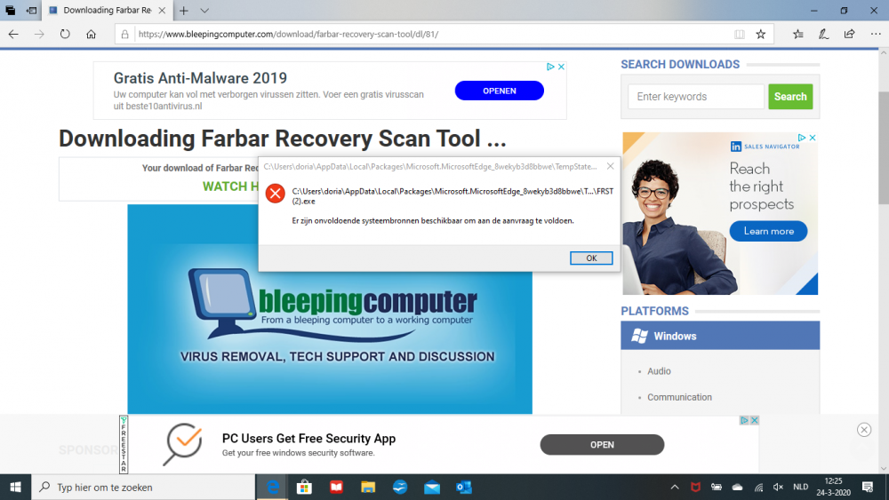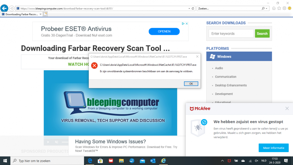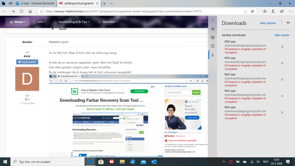 Ik let zeker op wat ik open, sinds een paar maanden de betalende McAfee anti virus. Sinds de aankoop (2018) eenmaal volledig fabrieksinstelling moeten doen ass lenevo (via pinnetje indrukken langs de zijkant) en driemaal systeemherstel 2x met ass lenevo en laatste maal op eigen iniatief. Ging dat ding buiten gooien, want steeds miserie om alles terug te zetten en te vinden. Nu werk alles, hopelijk blijft het zo. Hoe kan ik jullie bedanken. Doriane