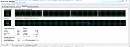 Hey! Mijn probleem is toch nog niet voorbij. Vanmiddag, weer hetzelfde, mijn FS2004 staat aan, maar zonder activiteit... Na de middag is de FSD gestopt, de blauwe lijn is opgelopen tot 4,8GB en er is géén vrij geheugen meer. Op het beeld in bijlage staat wel 3618 MB vrij geheugen, maar dat is nu. Voordat de blauwe lijn plots daalde stond daar nog slechts 4 MB vrij geheugen. Ik herinner me bij vorige gelegenheden ook enkele malen gezien te hebben, dat het vrij geheugen echt tegen de 'nul' aan stond telkens de fout opgetreden is. En ik had vanmorgen zelfs nog mijn virtueel geheugen wat hoger gezet, omdat ik meende te zien dat er reeds een dalende tendens was... Ik heb n u al enkele jaren Windows 7, en mijn FS2004 werkt al die tijd eigenlijk goed, ne nu, sinds enkele weken dus, treedt herhaalde malen die fout op. En dan is dat praktisch altijd als de FSS2004 gedurende een relatief lange tijd, 1 à 2 uren, aanstaat maar niet actief. Ik kan zoiets niet verklaren. Er is dan immers alleen maar het programma geladen, en alle addon 's zijn niet gelaten.... Wat me ook opgevallen is, dat is dat sommige programma's op mijn PC traag werken. Bijvoorbeeld Outlook mail start zéér traag, Facebook pagina 's openen zeer traag... IK weet niet of dat daarmee verband heeft, maar het zou misschien wel kunnen? Graag nog eens goed nadenken, ... Misschien zal ik toch weer mijn Windows 7 moeten heropstarten? Greetz Jive1 - Belgium