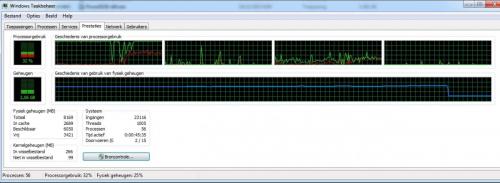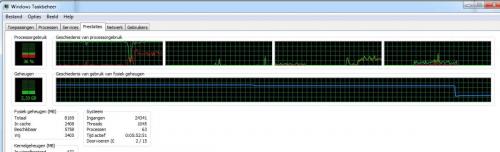 Hey! Toevallig dit... Ik had gewoon voor etenstijd mijn Flightsimulator laten opstaan... Wanneer ik terugkom bij mijn pc na het eten, is die FS weerstilgevallen, terwijl het laatste beeld nog op scherm staat en mijn Taakbeheer het beeld weergeeft dat in bijlage is. Zie de blauwe lijn! Verder helemaal niets speciaals met mijn pc buiten die geheugenlijn.... Greetz Jive1 - Belgium