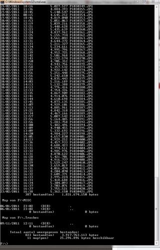 4. Inderdaad edc, als ik in dos-prompt ga, dan krijg ik via die weg de foto's te zien. Hier is een knipsel van het resultaat In de verkenner is er enkel een lege schijf te zien. Hier een knipsel ervan