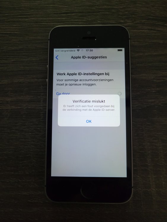 @iEscape dat lukt niet ik krijg op het scherm dit te lezen ( verificatie mislukt in dik zwarte letters Er Heeft zich een fout voorgedaan bij de verbinding met de Apple ID-server ) als ik op ok klik vraagt hij weer om mijn Apple ID - wachtwoord .