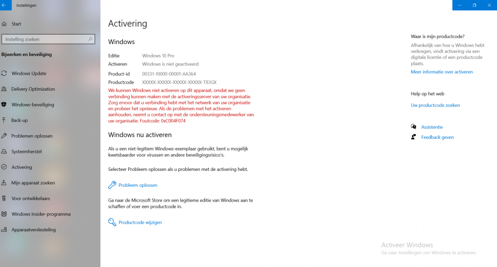 Beste Forum leden Ik krijg iedere keer deze melding Activeer Windows Ga Naar Instellingen om Windows Te activeren . dat heb ik al een aantal keren gedaan maar naar een dag of 5 krijg ik weer die melding . Ik heb een HP Probook 450 G4 met standaard Windows 10 dat er op stond toen ik hem kocht in de winkel wat moet ik doen om het hellemaal in orde te krijgen . Ik heb e en aantal weken geleden hem wel opgeschoond terug gezet naar fabrieksinstellingen hier onder nog een foto ik hoop dat jullie mij kunnen helpen .