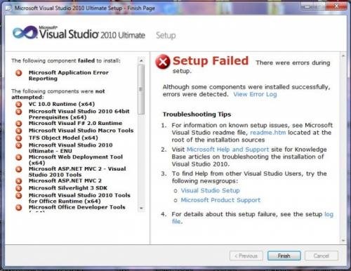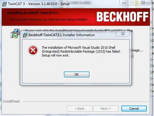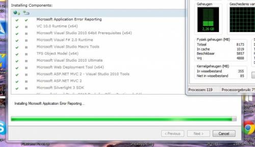Beste, Voor school moet ik een programma twincad(voor Bechoff PLC's) installeren. Maar deze vraagt steeds (voor ik kan installeren) naar Microsoft Visual Studio 2010. En dat heb ik niet op mijn pc staan. Wanneer ik deze dan wil installeren, krijg ik telkens het volgende: gevolgt door: ik kan hier uit afleiden dat het installeren van "Microsoft application error reporting" precies niet lukt. weten jullie wat ik nu kan doen om het toch te installeren. alvast bedankt groeten, Bart het log-file: (is te groot krijg ik er niet op) daarom heb ik het in de bijlage gestoken: [ATTACH]28459[/ATTACH] Error log-file: [10/11/13,18:55:59] Microsoft Application Error Reporting: [2] Error: Installation failed for component Microsoft Application Error Reporting. MSI returned error code 1603 [10/11/13,18:56:00] VS70pgui: [2] DepCheck indicates Microsoft Application Error Reporting is not installed. [10/11/13,18:56:00] VS70pgui: [2] DepCheck indicates VC 10.0 Runtime (x64) was not attempted to be installed. [10/11/13,18:56:00] VS70pgui: [2] DepCheck indicates Microsoft Visual Studio 2010 64bit Prerequisites (x64) was not attempted to be installed. [10/11/13,18:56:00] VS70pgui: [2] DepCheck indicates Microsoft Visual F# 2.0 Runtime was not attempted to be installed. [10/11/13,18:56:00] VS70pgui: [2] DepCheck indicates Microsoft Visual Studio Macro Tools was not attempted to be installed. [10/11/13,18:56:00] VS70pgui: [2] DepCheck indicates TFS Object Model (x64) was not attempted to be installed. [10/11/13,18:56:00] VS70pgui: [2] DepCheck indicates Microsoft Visual Studio 2010 Ultimate - ENU was not attempted to be installed. [10/11/13,18:56:00] VS70pgui: [2] DepCheck indicates Microsoft Web Deployment Tool (x64) was not attempted to be installed. [10/11/13,18:56:00] VS70pgui: [2] DepCheck indicates Microsoft ASP.NET MVC 2 - Visual Studio 2010 Tools was not attempted to be installed. [10/11/13,18:56:00] VS70pgui: [2] DepCheck indicates Microsoft ASP.NET MVC 2 was not attempted to be installed. [10/11/13,18:56:00] VS70pgui: [2] DepCheck indicates Microsoft Silverlight 3 SDK was not attempted to be installed. [10/11/13,18:56:00] VS70pgui: [2] DepCheck indicates Microsoft Visual Studio 2010 Tools for Office Runtime (x64) was not attempted to be installed. [10/11/13,18:56:00] VS70pgui: [2] DepCheck indicates Microsoft Office Developer Tools (x64) was not attempted to be installed. [10/11/13,18:56:00] VS70pgui: [2] DepCheck indicates Dotfuscator Software Services - Community Edition was not attempted to be installed. [10/11/13,18:56:00] VS70pgui: [2] DepCheck indicates Crystal Reports templates for Visual Studio 2010 was not attempted to be installed. [10/11/13,18:56:00] VS70pgui: [2] DepCheck indicates Microsoft SQL Server Compact 3.5 SP2 (x86) ENU was not attempted to be installed. [10/11/13,18:56:01] VS70pgui: [2] DepCheck indicates Microsoft SQL Server Compact 3.5 SP2 (x64) ENU was not attempted to be installed. [10/11/13,18:56:01] VS70pgui: [2] DepCheck indicates Visual Studio 2010 Tools for SQL Server Compact 3.5 SP2 ENU was not attempted to be installed. [10/11/13,18:56:01] VS70pgui: [2] DepCheck indicates Microsoft Sync Framework Runtime v1.0 (x64) ENU was not attempted to be installed. [10/11/13,18:56:01] VS70pgui: [2] DepCheck indicates Microsoft Sync Services for ADO.NET v2.0 (x64) ENU was not attempted to be installed. [10/11/13,18:56:01] VS70pgui: [2] DepCheck indicates Microsoft Sync Framework Services v1.0 (x64) ENU was not attempted to be installed. [10/11/13,18:56:01] VS70pgui: [2] DepCheck indicates Microsoft Sync Framework SDK v1.0 (x64) ENU was not attempted to be installed. [10/11/13,18:56:01] VS70pgui: [2] DepCheck indicates VC 10.0 Designtime (x64) was not attempted to be installed. [10/11/13,18:56:01] VS70pgui: [2] DepCheck indicates Microsoft Visual Studio 2010 Performance Collection Tools (x64) was not attempted to be installed. [10/11/13,18:56:01] VS70pgui: [2] DepCheck indicates Microsoft Visual Studio 2010 IntelliTrace (x64) was not attempted to be installed. [10/11/13,18:56:01] VS70pgui: [2] DepCheck indicates Microsoft SQL Publishing Wizard 1.4 was not attempted to be installed. [10/11/13,18:56:01] VS70pgui: [2] DepCheck indicates Microsoft SQL Server System CLR Types was not attempted to be installed. [10/11/13,18:56:01] VS70pgui: [2] DepCheck indicates Microsoft SQL Server System CLR Types (x64) was not attempted to be installed. [10/11/13,18:56:01] VS70pgui: [2] DepCheck indicates Microsoft SQL Server 2008 R2 Management Objects was not attempted to be installed. [10/11/13,18:56:01] VS70pgui: [2] DepCheck indicates Microsoft SQL Server 2008 R2 Management Objects (x64) was not attempted to be installed. [10/11/13,18:56:01] VS70pgui: [2] DepCheck indicates Microsoft SQL Server 2008 Express Service Pack 1 (x64) was not attempted to be installed. [10/11/13,18:56:01] VS70pgui: [2] DepCheck indicates Microsoft SQL Server 2008 R2 Data-Tier Application Framework was not attempted to be installed. [10/11/13,18:56:01] VS70pgui: [2] DepCheck indicates Microsoft SQL Server 2008 R2 Data-Tier Application Project was not attempted to be installed. [10/11/13,18:56:01] VS70pgui: [2] DepCheck indicates Microsoft SQL Server 2008 R2 Transact-SQL Language Service was not attempted to be installed. [10/11/13,18:56:01] VS70pgui: [2] DepCheck indicates Microsoft SharePoint Developer Tools was not attempted to be installed. [10/11/13,18:56:01] VS70pgui: [2] DepCheck indicates Microsoft Visual Studio 2010 ADO.NET Entity Framework Tools was not attempted to be installed. [10/11/13,18:56:01] VS70pgui: [2] DepCheck indicates Microsoft Help Viewer 1.0 x64 was not attempted to be installed. probleem Microsoft visual studio 2013.txt -