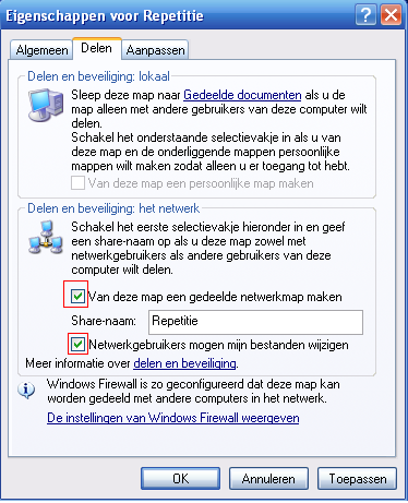 Hoi stephan boute, Sorry voor de ietwat late reactie. Indien je de map 'Stef' wilt delen controleer je in het tabblad "Delen" als alles aangevinkt staat zoals in onderstaande afbeelding. Vervolgens kan je het vinkje weghalen bij "Alleen lezen" onder het tabblad "Algemeen". Is de map dan niet zichtbaar in het netwerk? Groet, Mako -